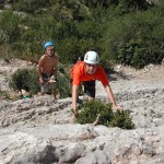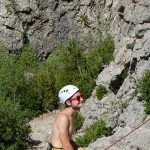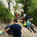 Pique-nique au secteur de la cascade et en après-midi après quelques voies d'escalade, grand rappel de 50 mètres avec auto-bloquant.