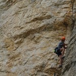 - Début d’après-midi, secteur « la cascade » ou le "Chateau",où l'escalade y est plus déversante, plus physique et fait appel à d'autres placements : on approfondit la lecture du rocher et le relâchement pour la réalisation de voies à vue.