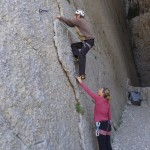- les règles de base au niveau gestuel, l’importance de la lecture en extérieur, la recherche du relâchement, la notion de rythme en escalade, la recherche du plaisir d’évoluer à la verticale.